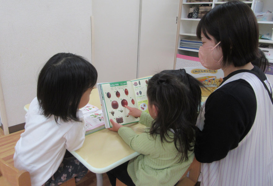 栄養バランスはもちろん、楽しくおいしく給食やおやつが食べられるように見た目や形状など工夫をしながら提供しています。実際に給食で出る食材に触れたり、図鑑や絵カードなどを使って食材に親しみが持てるような活動もしています。毎日「おいしい!」という声や、お友だちと楽しそうに食べてくれている姿を見ることがとても嬉しいです。
